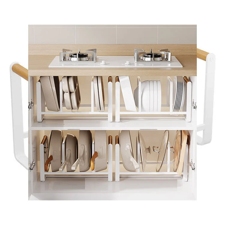 Penyewa: Mudah dipasang, mudah dipindahkan. Rak penganjur penutup periuk logam China ini boleh mengubah dapur dengan mudah.