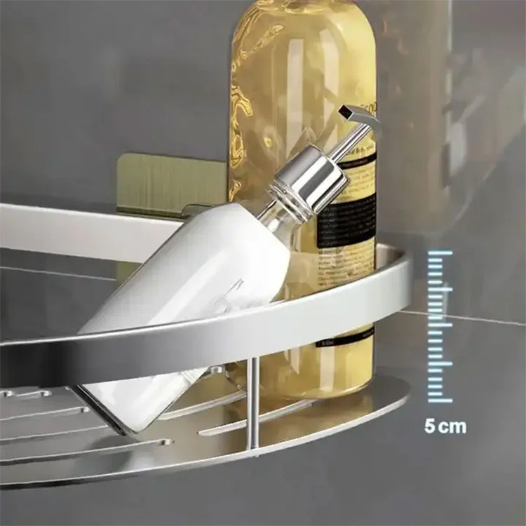 Rak bilik mandi mewah ini menampilkan reka bentuk struktur segi tiga, yang menggunakan sepenuhnya sudut/sudut dinding.