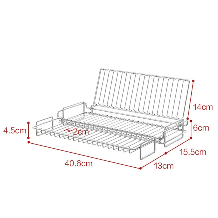 Saiz keseluruhan ialah 40.6 cm/15.98in, ketinggian badan utama ialah 6 cm/2.36in, ketinggian tepi menegak ialah 14 cm/5.51in, lebar sambungan sisi ialah 15.5 cm/6.1in, jurang saliran ialah 2 cm/0.78in. Reka bentuk ini sesuai untuk kebanyakan sinki satu-slot/double-slot isi rumah dan memastikan air mengalir dengan cepat, mengelakkan pengumpulan air.